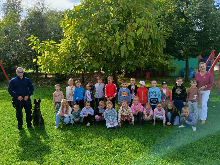 Bezpieczny przedszkolak - wizyta policjantów w przedszkolu. Poznanie psa policyjnego . +5 Zobacz zdjęcia